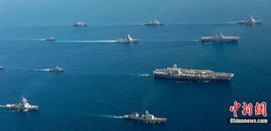 美韩联合舰队在日本海进行实战演习