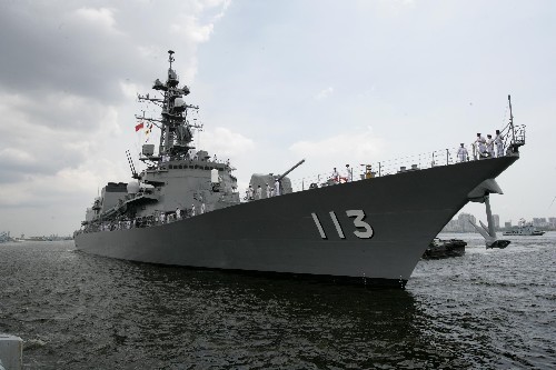 2008年6月24日,日本海上自卫队驱逐舰“涟波”号驶入中国湛江码头,“这是自第二次世界大战结束以来日本军舰首次访华