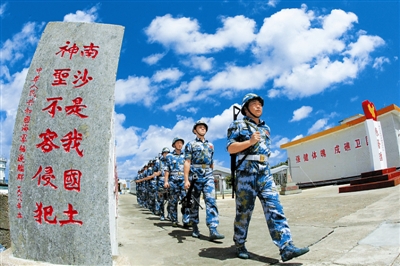 大学生干部朱凯全带领官兵在南沙永暑礁巡逻。(刘 堂摄)