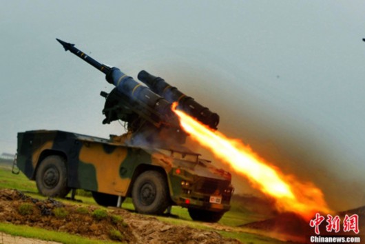 资料图:解放军红旗-7型防空导弹攻击空中目标