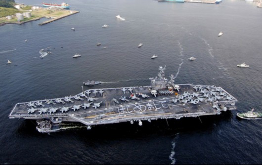 资料图:抵达日本基地的美国海军华盛顿号航母