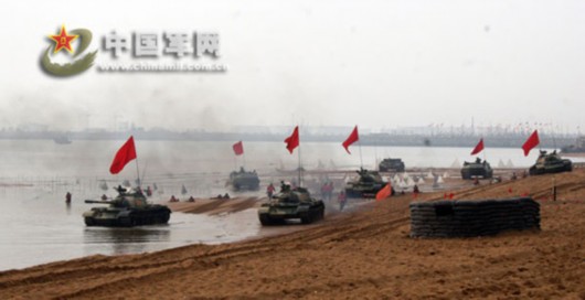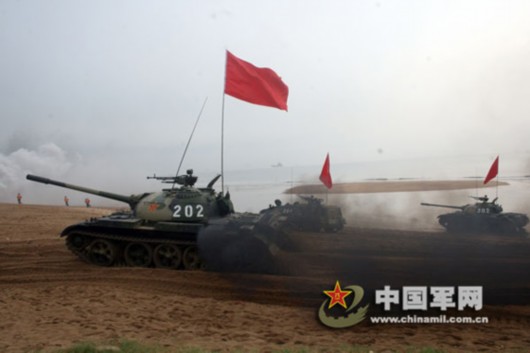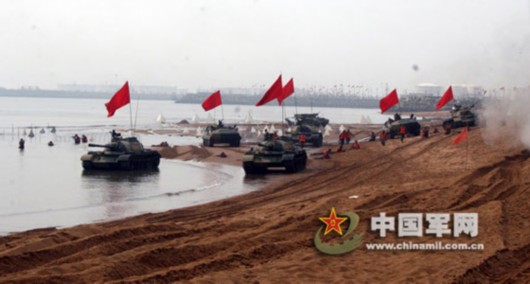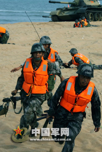 济南军区某装甲师组织的装甲部队合成营岸滩进攻实兵演练,近日在黄海之滨拉开帷幕。演练中,他们重点对新的作战课题、作战样式和战法手段进行了探索研究,实践了合成营进攻战斗的联合作战思想,并取得突破性成果。