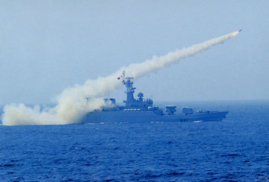 资料图:中国海军541号导弹护卫舰在东海演习时发射导弹。