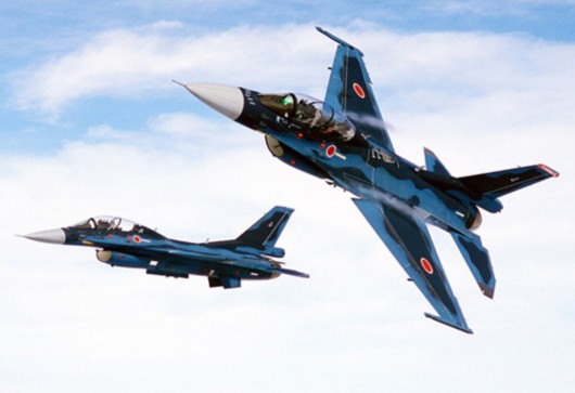 资料图:日本航空自卫队F-2战机双机编队