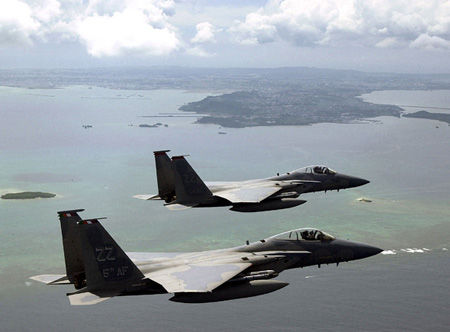 资料图:驻日美空军第五航空队的F-15战斗机在巡航