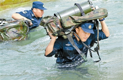官兵正在进行泅渡训练。本报记者 仓小宝摄