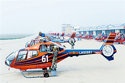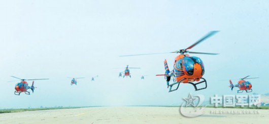 总参陆航部某飞行训练团,伴随着此起彼伏的发动机轰鸣声,一架架橘红色的国产某新型教练直升机呼啸着飞上蓝天。