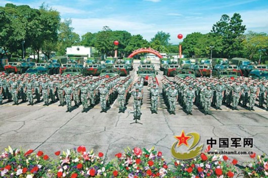 8月20日,驻香港部队某旅按条令规定举行隆重的授装仪式