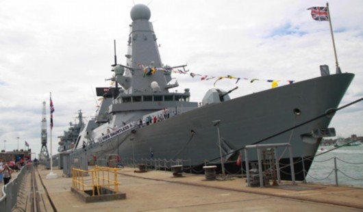 资料图:英国“不屈”号驱逐舰停泊在英国南部的朴茨茅斯港,供人参观