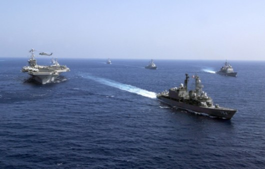 参加联合军演的美日联合舰队 图片来源:中国新闻网