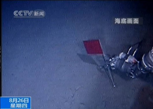 中国科学技术部、国家海洋局26日在北京联合宣布,中国第一台自行设计、自主集成研制的“蛟龙号”载人潜水器3000米级海试取得成功,并在南海海底插上中国国旗。