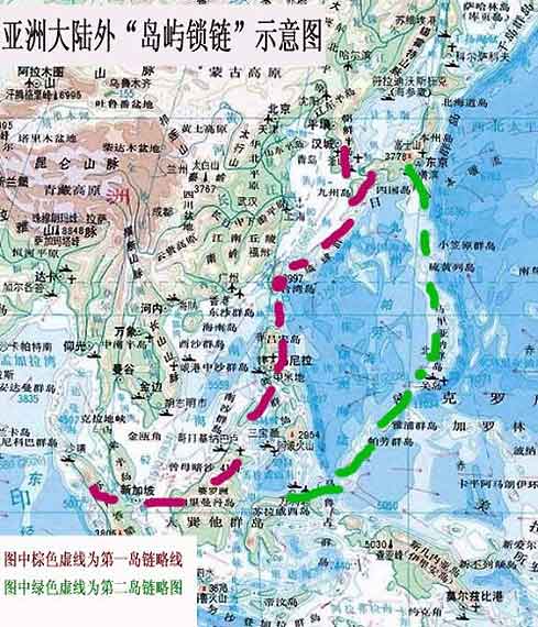 自上个世纪50年代末起,我军有关部门根据美国等西方国家对我实施战略封锁和军事部署的情况,陆续在一些文件和讲话中借用了“岛链”和“第一岛链”的提法。