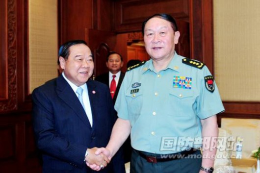 8月29日,国务委员兼国防部长梁光烈上将在钓鱼台国宾馆会见泰国国防部长巴威·翁素万上将。 李晓伟摄