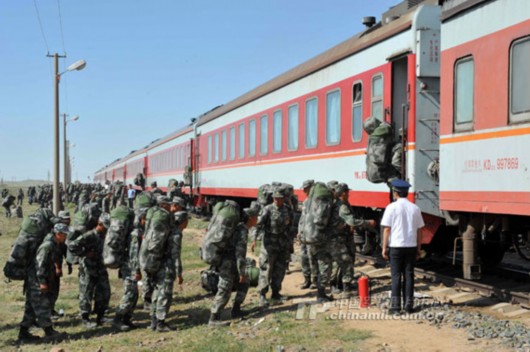 参加上海合作组织成员国“和平使命2010”联合反恐军事演习的中方陆军战斗群第一梯队,8月31日从北京军区某合同战术训练基地启程,前往位于哈萨克斯坦南部的演习地域。中国军事图片中心 记者 李靖 摄影报道