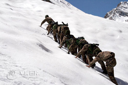 资料图:解放军驻藏部队正在雪山上巡逻