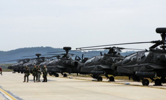 资料图:驻韩美军装备的AH-64系列攻击直升机