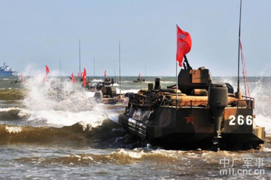 资料图:解放军部队进行战车海上浮渡作战演练 刘先军摄