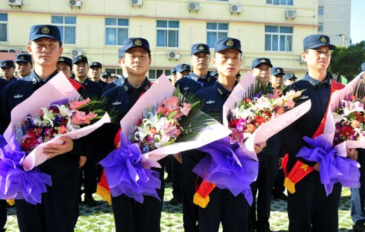 中共中央政治局委员、上海市委书记俞正声,中央军委委员、海军司令员吴胜利在实验现场迎接潜水员出舱。