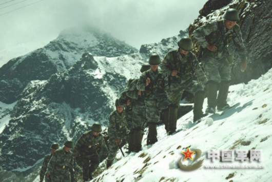 资料图:解放军驻藏部队巡逻中翻越雪山
