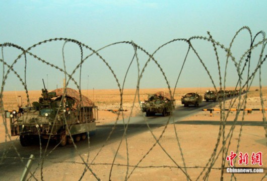 资料图:当地时间8月18日,美军在伊拉克的最后一批作战部队撤退至科威特。