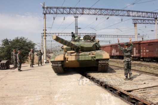 参加“和平使命-2010”上合组织联合反恐军演的中方参演部队陆军战斗群全部抵达演习地域。图为我军99式坦克抵达演习地域。中国军事图片中心 特约记者 张坤平 摄影