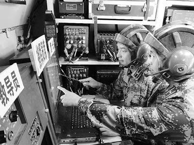 指挥员在指挥方舱中利用信息系统指挥作战。 吴金明摄