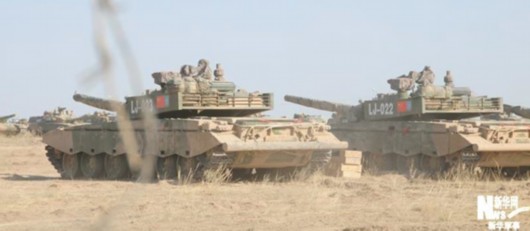 中国陆军99式主战坦克进入演习地域。新华社记者 孙彦新 摄