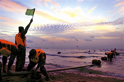 由济南军区军需物资油料部研制的“轻便型岸滩油料补给系统”,解决了海上动态环境下的管线对接,连接速度提高8倍,突破了钢质输油管线无法海上铺设的限制,实现无码头条件下岸海一体化油料补给。该系统去年底获得全军科技进步一等奖,并有8项成果申报国家专利。