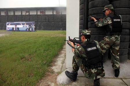 黄晓平:在菲律宾人质劫持事件之后,武警四川总队立即下达指示,要求各支队加强处置劫持公交车事件的研究,并针对性地制定了反劫持战法,从封锁控制、侦查、狙击、突击、排爆等专业入手,每个专业制定出几套到十几套战法,并在平时训练中加强实战演练。比如,我们在训练中将队员放在停尸间里练胆,从心理上破除他们的畏惧;狙击手射击时,在一旁放高音喇叭、制造枪声,营造一种喧闹的环境,训练狙击手排除一切干扰,枪枪命中。