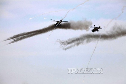 联演空中直升机开火实施对地攻击。中国军事图片中心 记者 郭建跃 摄影报道