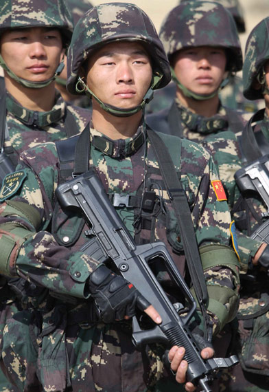 上合军演首次实弹演练前中方特战队员整装待发。新华社记者王建民摄