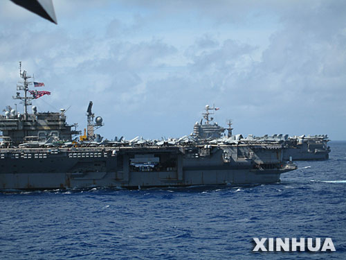 亚太军演风云再起!美军几天前突然宣布,本周将在关岛海域举行“勇敢之盾2010”演习,除“乔治·华盛顿”号航母,这次还派遣超过16架F-22“猛禽”战机参演。一般认为,此次演习与美军重返亚洲的战略布局有关,更与向中国展示军力脱不了关系。