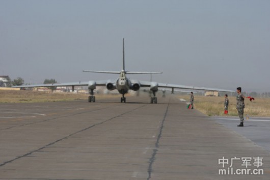 参加“和平使命-2010”联合反恐军事演习预演的轰炸机准备起飞