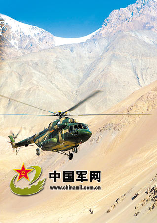 资料图:新疆军区部队列装的米-17型直升机在山谷中飞行。李元洪摄