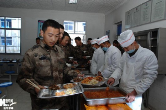 资料图:西藏军区部队军人准备进餐