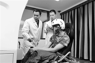记者在中心训练室看到,空间定向训练从反旋转到俯仰翻转,再到倾斜和滚转,参训的飞行员在姿态灵活的转椅上,能真实进行飞行错觉体验,医护人员根据检测信息,快速制定定向训练内容,并及时组织实施。座舱减压训练能模拟万米高空座舱突然爆破减压缺氧时的情景,医护人员通过呼吸训练器指导飞行员掌握正确的呼吸方法……