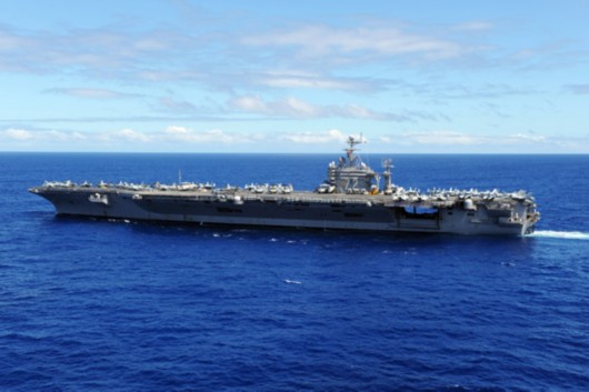 资料图:9月19日,在太平洋海域航行的美国海军CVN-72林肯号航母