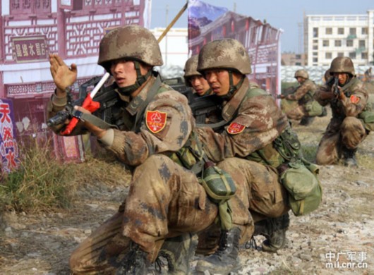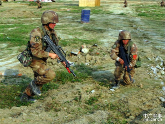 “某地有多名‘恐怖分子’劫持数名‘人质’,命你部迅速前往支援地方反恐。”22日下午,参加“使命行动-2010”跨区机动演习的兰州军区某集团军,在机动途中接到导演部给出的“情况”。受领任务的某机步旅一连连长张辉带领官兵奔赴现场发现,多名“恐怖分子”藏在周围民房林立的建筑物里负隅顽抗,情势危急。