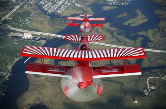美国“红鹰”特技飞行表演队由1架“克里森鹰”I型单座表演机(后)与1架“克里森鹰”II型双座表演机组成。 图片:美国“红鹰”航空运动(Red Eagle Air Sports photo)