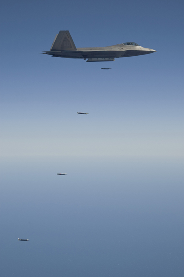 资料图:美国空军F-22A隐形战机空投SDB小直径炸弹
