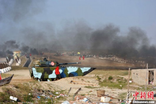 11月2日,海军陆战队两栖突击登陆战斗在南海某海域打响,就此拉开了代号为“蛟龙—2010”的实兵实弹检验性演习序幕。中新社发 陶社兰 摄