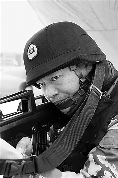 “5名‘恐怖分子’劫持一架民航客机,红方立即处置……”初冬时节,一场反劫机对抗演练展开。红方是武警特警学院特战大队特战队员,蓝方是武警某训练基地模拟中队官兵。