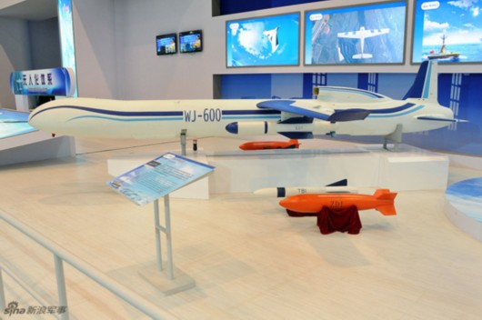 中国航天科技集团展出WJ-600型无人机等模型。摄影:冰凉(未经许可 不得转载)