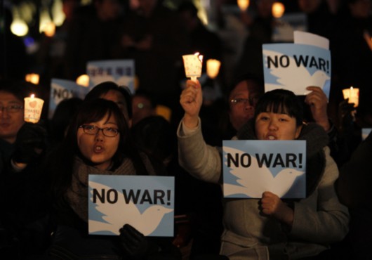 11月29日,韩国部分民众举行烛光守夜活动反对战争。图片来源:新华网