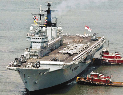 英军方前日发表声明称,除了要出售这艘“无敌号”退役航母外,不排除会再出售其它军用装备,以应付财政困难的局面。英国政府财政紧绌,计划大幅削减军费,未来将与法国共享航母。