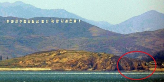 图中红圈内被认为是朝鲜火炮阵地。新华社/联合通讯社