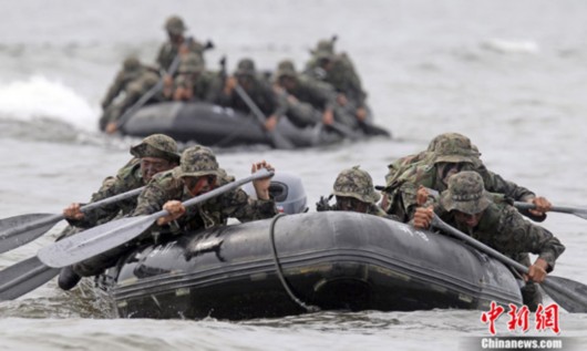资料图:韩国特种部队划橡皮艇进行作战训练