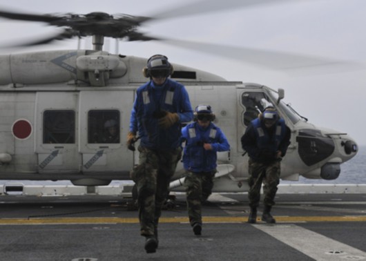 12月7日,日本SH-60K直升机降落在美军两栖攻击舰甲板上