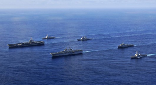 刚刚结束了韩美军演,美国“乔治·华盛顿”号航母又马不停蹄地加入到为期8天的日美联合军事演习。外界普遍认为,美国拉拢韩国、日本连续举行大规模军演,不仅仅是为了震慑朝鲜,同时也是在向东亚、东南亚等西太平洋地区的国家炫耀武力,尤其是向正在崛起中的中国施压。回顾一下2010年不难发现,美国在西太平洋海域不停地制造事端,拉帮结派舞枪弄棒、耀武扬威,实际上还是以“炮舰政策”来抢占未来的战略和军事存在。