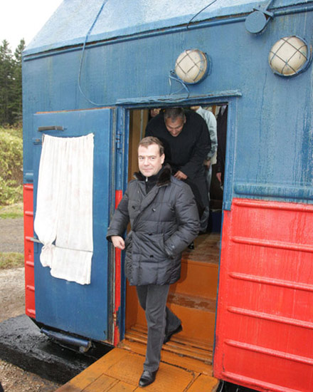 11月1日,俄罗斯总统梅德韦杰夫在南千岛群岛(日本称北方四岛)的国后岛视察。新华社/俄新社